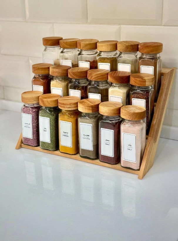 18عدد ادویه مکارتی12سانتی بادرب چوبی و سری نمک پاشی